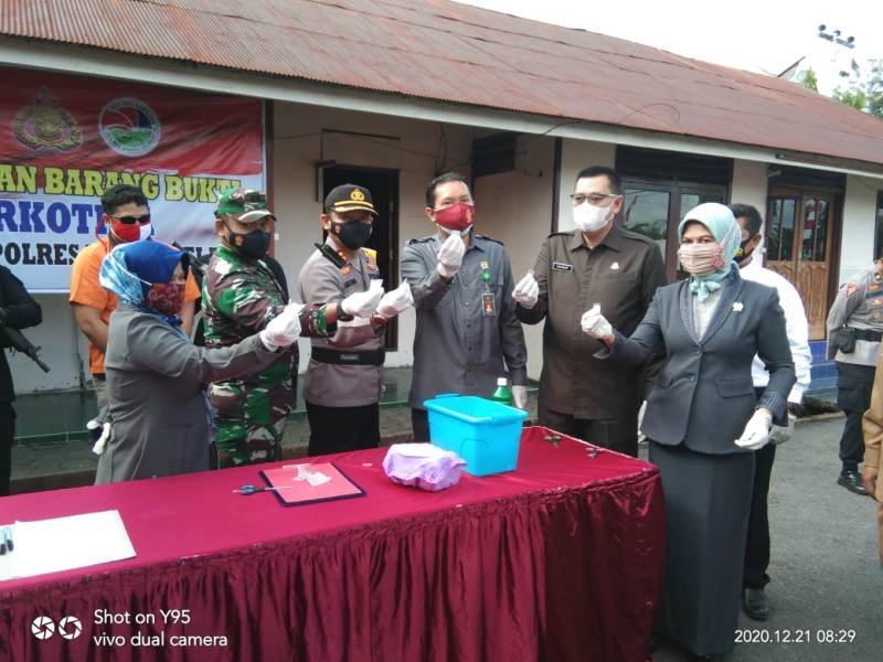 Setelah berhasil di gagalkan, maka jajarn Polres Barsel langsung melakukan pemusnahaan barang bukti sabu tersebut, yang dilakukan langsung oleh Kapolres Barsel bersama dengan forkompinda dan Pemkab Barsel, yang dilaksanakan di halaman mako Polres Lama, Jalan Tugu, Buntok beberapa hari lalu.