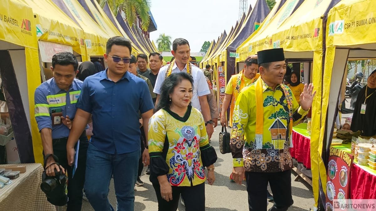 Kegiatan tersebut dipusatkan di halaman Stadion Batuah, Buntok, dan ditutup dengan acara Bazar serta Penyerahan Hadiah Lomba Ide dan Inovasi Bisnis UMKM 2025 yang dibuka secara resmi oleh Wakil Bupati (Wabup) Barsel, Khristianto Yudha, Minggu (12/10).