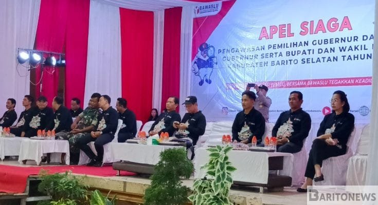 Buntok – Badan Pengawas Pemilihan Umum (Bawaslu) Kabupaten Barito Selatan (Barsel), Kalimantan Tengah (Kalteng), menggelar Apel Siaga Pengawasan pada Kamis (7/10) kemarin, di Gedung Jaro Pirarahan, Buntok.