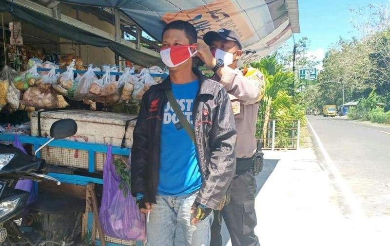 Ditengah kegiatan sambang, Brigpol Yogi menyapa warganya yang terlihat tanpa menggunakan masker, sementara masker sendiri sudah diwajibkan untuk dipakai sesuai anjuran pemerintah dalam menyongsong adaptasi kebiasaan baru saat keluar rumah.