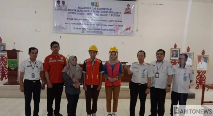 Buntok – Dinas Pekerjaan Umum dan Penataan Ruang (PUPR) Kabupaten Barito Selatan (Barsel), Kalimantan Tengah (Kalteng) menggelar pelatihan dan sertifikasi kompetensi kerja konstruksi bagi siswa SMK Negeri 3 Buntok, Selasa (19/3).
