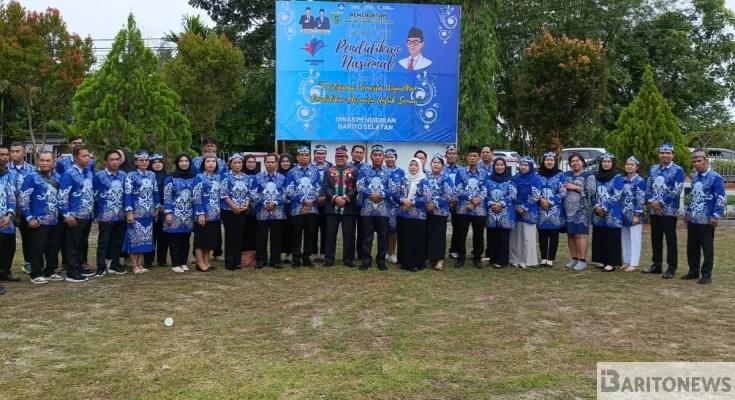 Buntok – Dinas Pendidikan (Disdik) Kabupaten Barito Selatan (Barsel), Kalimantan Tengah (Kalteng) menggelar upacara bendera untuk memperingati Hari Pendidikan Nasional (Hardiknas) 2025 di halaman Kantor Disdik setempat, Jumat (2/5).