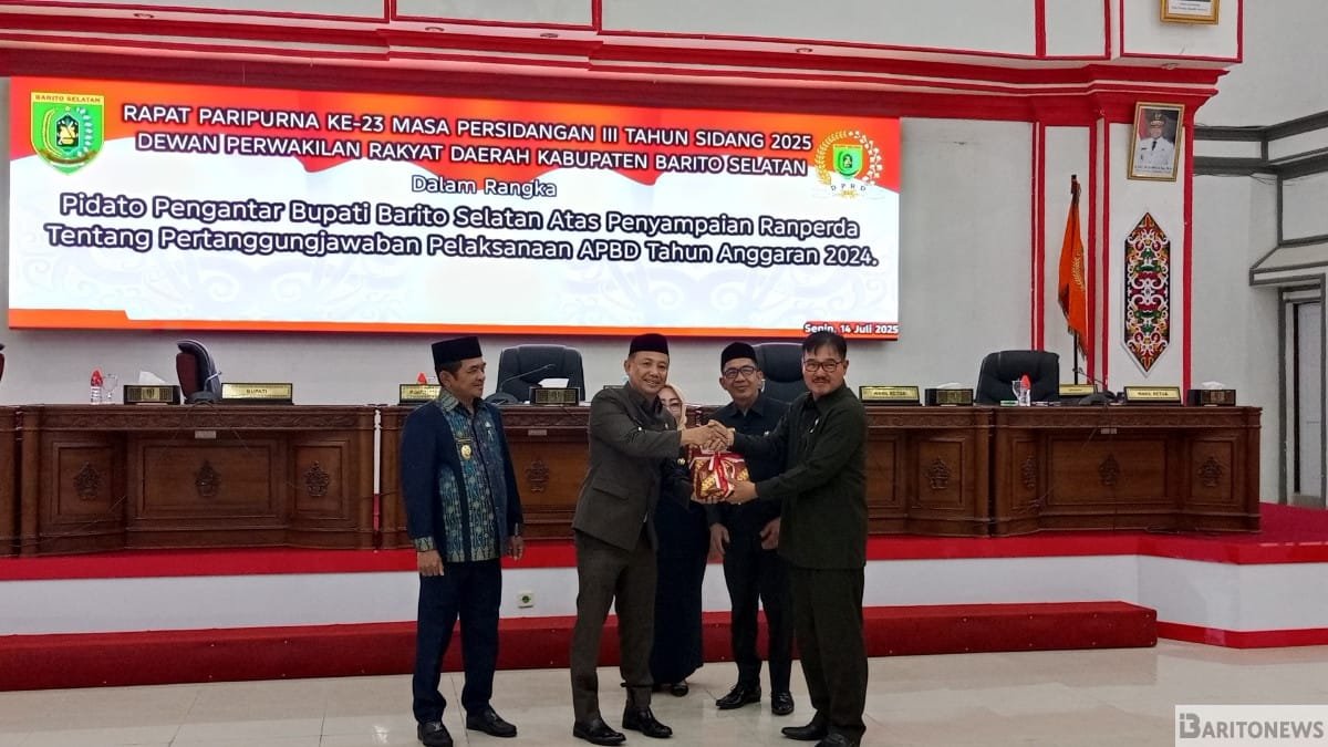 BUNTOK (BNews) – Dewan Perwakilan Rakyat Daerah (DPRD) Kabupaten Barito Selatan (Barsel), Kalimantan Tengah (Kalteng) menggelar Rapat Paripurna ke-23 Masa Persidangan III Tahun 2025 dengan agenda penyampaian Rancangan Peraturan Daerah (Raperda) Pertanggungjawaban Pelaksanaan APBD Tahun Anggaran 2024.