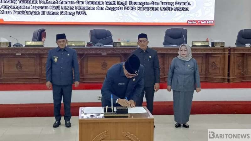 “Laporan hasil reses tersebut merupakan hasil reses pimpinan dan anggota DPRD Barsel melaksanakan reses di daerah pemilihan (Dapil)nya masing – masing pada akhir bulan Juni 2025 yang lalu,”kata Ketua DPRD Barsel HM Farid Yusran.