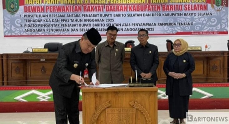 Rapat paripurna tersebut terkait dengan persetujuan bersama antara penjabat Bupati Barito Selatan dan DPRD Kabupaten Barito Selatan terhadap KUA dan PPAS tahun anggaran 2025.