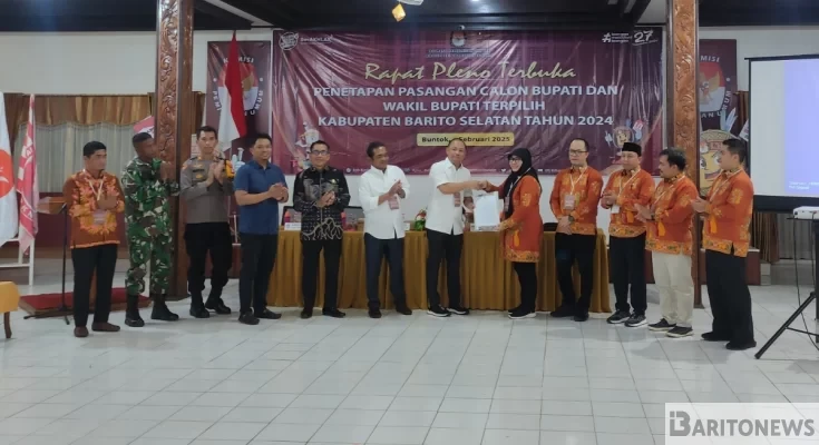 Buntok – Komisi Pemilihan Umum (KPU) Kabupaten Barito Selatan (Barsel), Kalimantan Tengah (Kalteng), secara resmi menetapkan Eddy Raya Syamsuri dan Khristianto Yudha sebagai Bupati dan Wakil Bupati Barsel periode 2025-2030.