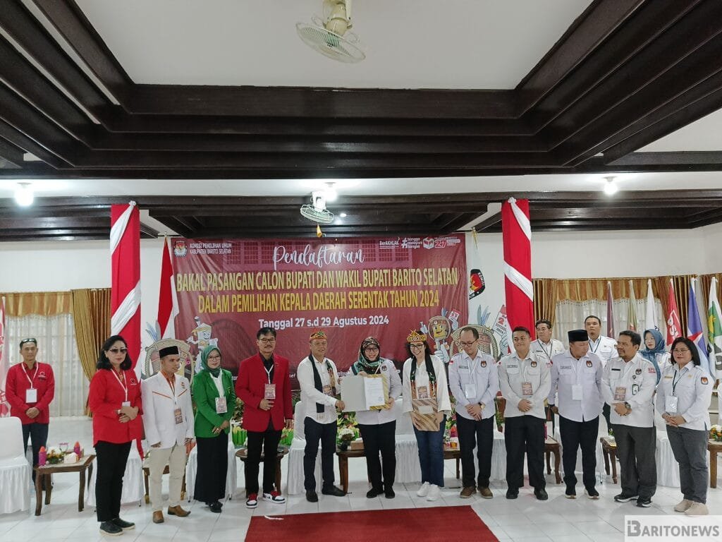 Barito.news, Buntok – Pasangan bakal calon bupati dan calon wakil bupati Barito Selatan, H. Pe’i dan Ina Prayawati, telah resmi mendaftar ke Komisi Pemilihan Umum (KPU) Barito Selatan sebagai peserta Pemilihan Kepala Daerah (Pilkada) 2024.