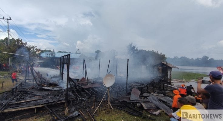Buntok – Kebakaran hebat terjadi di Desa Danau Sadar menghanguskan empat bangunan, yang terdiri dari tiga rumah dan satu ruko, pada Jumat (15/11) siang.