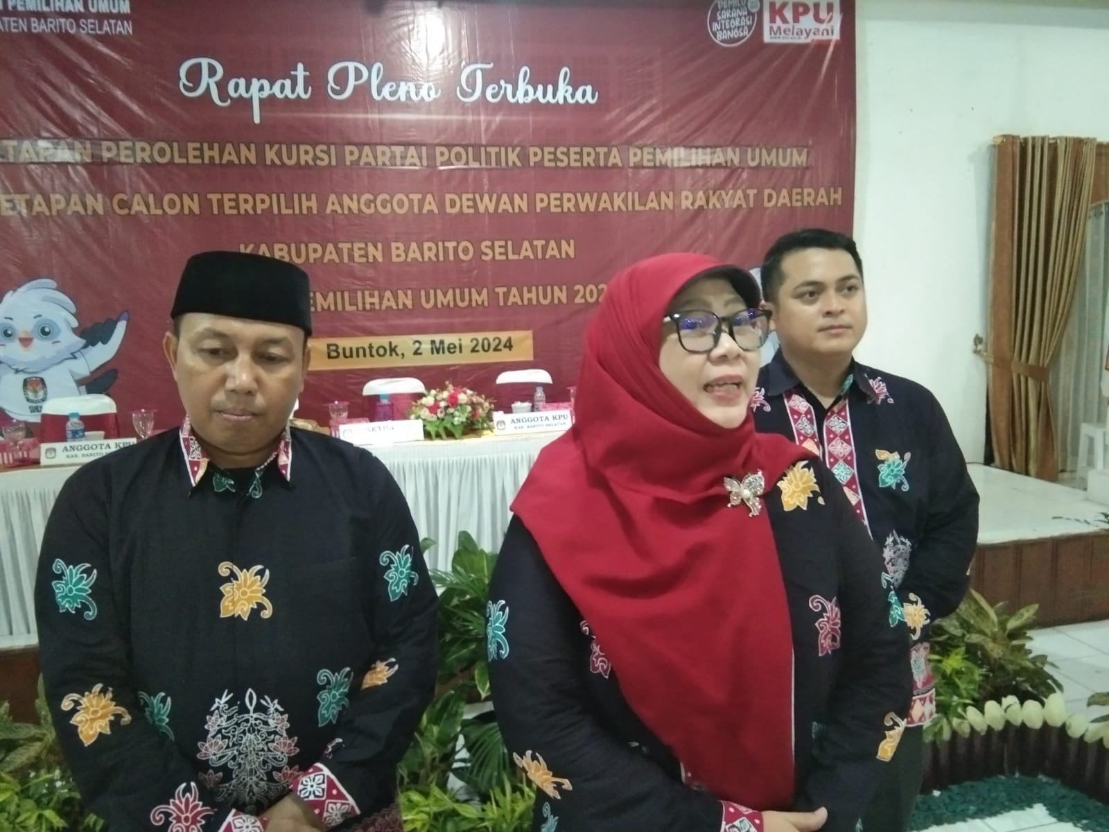 Penetapan 25 anggota DPRD Barsel tersebut dilakukan KPU Barsel pada rapat pleno terbuka penetapan perolehan kursi partai politik peserta pemilihan umum dan penetapan calon terpilih anggota DPRD Barsel, yang dilaksanakan di aula KPU Barsel, Kamis, (2/5) malam.
