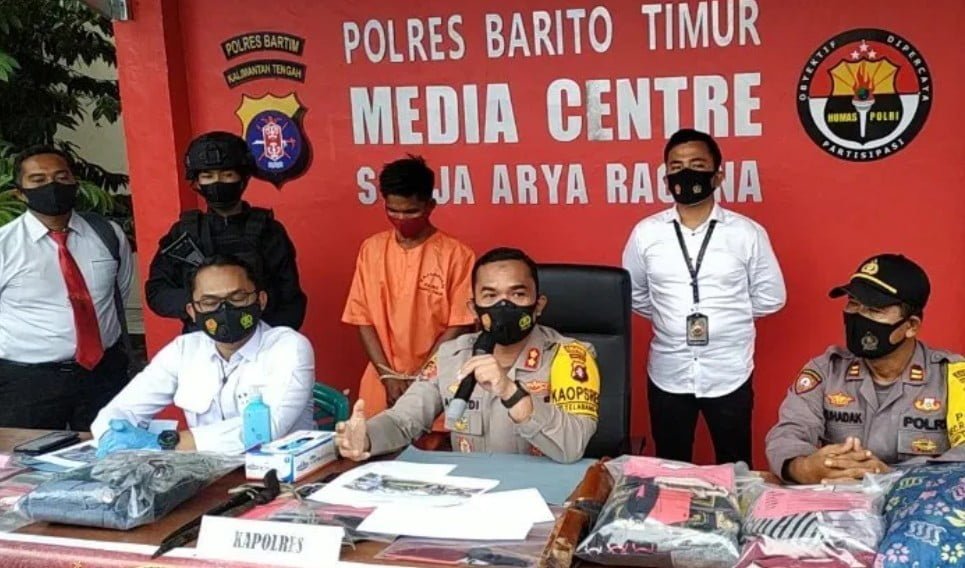 “Setelah laporan dari korban kami dari Satreskrim Polres Barito Timur langsung melakukan upaya-upaya dan dalam waktu 24 jam tesangka dapat kami amankan dan tersangka tersebut adalah resedivis dan sebelumnya tercatat sudah 3 kali si tersangka ini keluar masuk rutan dengan kasus kurang lebih sama,” Kapolres Bartim AKBP Apandi Eka Putra SIK.
