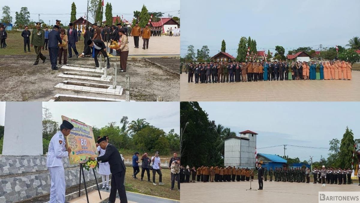Kegiatan yang berlangsung khidmat tersebut dipimpin langsung oleh Bupati Barsel, H Eddy Raya Samsuri, dan dihadiri Wakil Bupati (Wabup) Khristianto Yudha, Forkopimda, TNI-Polri, Veteran, pelajar, serta perwakilan organisasi kemasyarakatan.