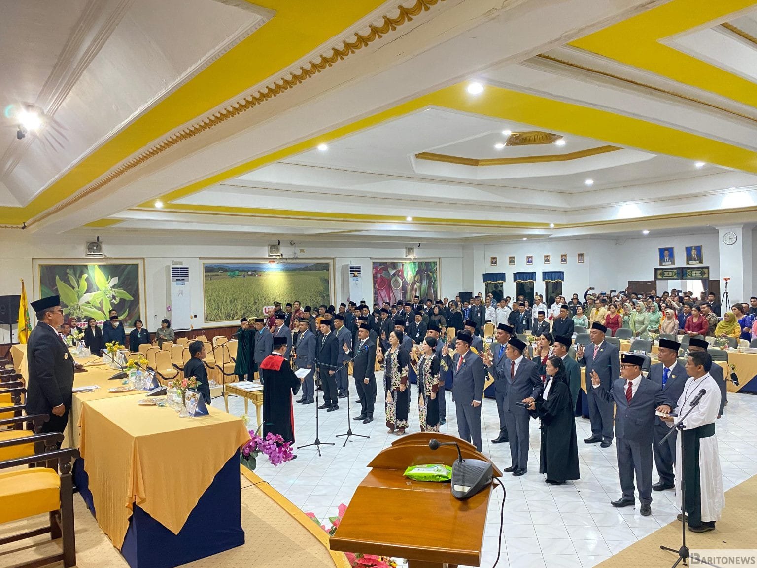 BARITO.NEWS, Tamiang Layang – Pada Rabu (14/8), sebanyak 25 Anggota Dewan Perwakilan Rakyat Daerah (DPRD) Kabupaten Barito Timur periode 2024-2029 resmi dilantik dalam rapat paripurna istimewa I masa sidang I tahun 2024. Acara pelantikan berlangsung di ruang rapat paripurna lantai 2 Gedung DPRD Barito Timur dan dipimpin oleh Ketua DPRD Nursulistio. Proses pengucapan sumpah/janji dilakukan oleh Ketua Pengadilan Negeri Tamiang Layang, Moch. Isa Nazarudin.