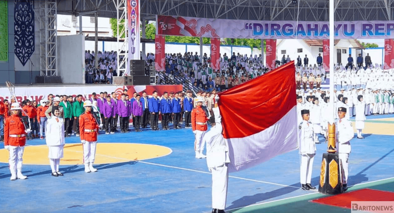 BARITO.NEWS, Muara Teweh – Pemerintah Kabupaten Barito Utara melaksanakan upacara peringatan Hari Ulang Tahun Kemerdekaan Republik Indonesia ke-79 pada Sabtu (17/08/2024) di Arena Terbuka Tiara Batara Muara Teweh. Upacara dipimpin langsung oleh Penjabat Bupati Barito Utara, Drs. Muhlis.