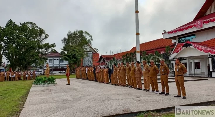 Buntok – Pemerintah Kabupaten Barito Selatan (Barsel), Kalimantan Tengah (Kalteng), melaksanakan Apel Gabungan Kedua Pada Tahun 2025 di halaman Kantor Bupati, pada Senin (20/01).