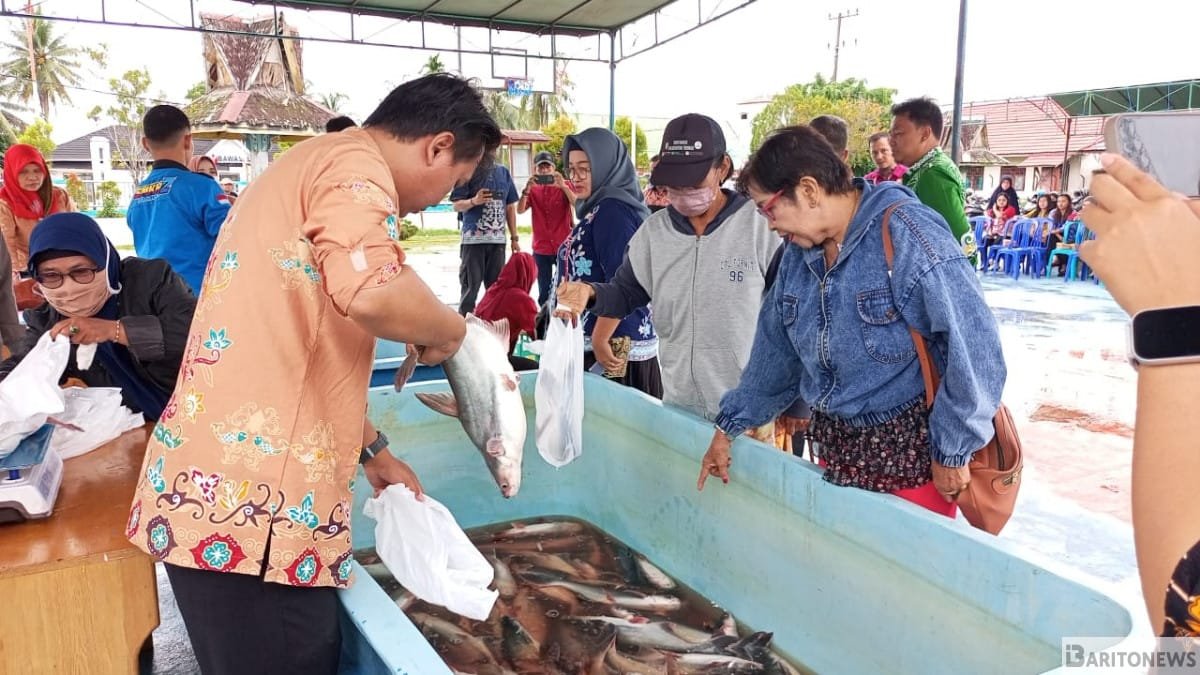 Dalam kegiatan tersebut, pemerintah menawarkan ikan nila seharga Rp35.000 per kilogram dari harga pasar Rp50.000 dan ikan patin Rp25.000 dari harga pasar Rp40.000 melalui skema subsidi daerah.