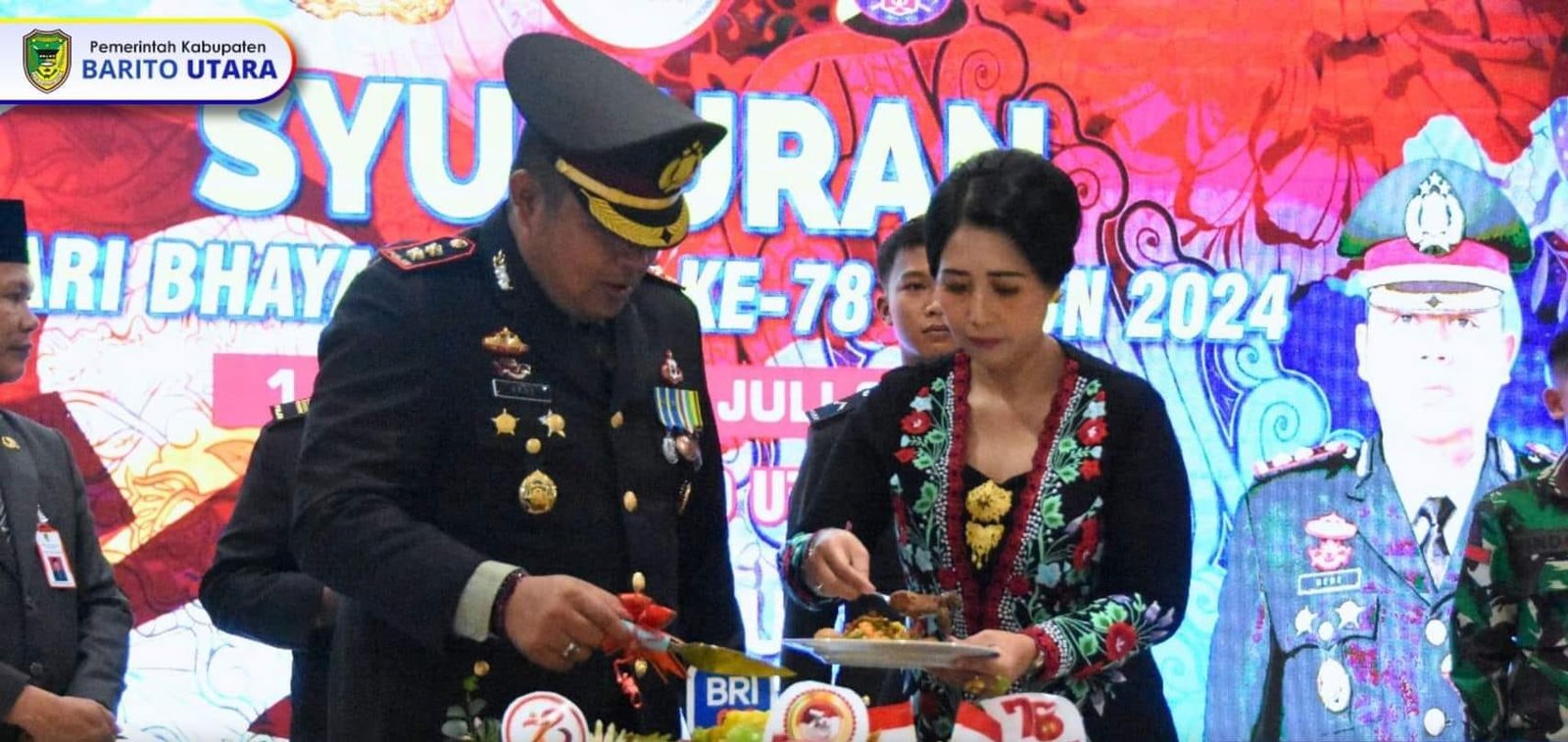 MUARA TEWEH – Pemerintah Kabupaten Barito Utara (Barut) yang diwakili oleh Staf Ahli Bupati, Hery Jhon Setiawan, bersama unsur kepala perangkat daerah dan unsur Forkopimda, menghadiri syukuran peringatan HUT Bhayangkara ke-78 yang diselenggarakan di Gedung Serbaguna Balai Antang, Muara Teweh, pada 1 Juli 2024.