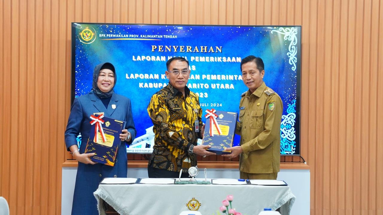 PALANGKARAYA – Pemerintah Kabupaten Barito Utara (Pemkab Barut) kembali meraih opini Wajar Tanpa Pengecualian (WTP) untuk kesepuluh kalinya. Opini tersebut diberikan atas Laporan Keuangan Pemerintah Daerah (LKPD) Tahun Anggaran 2023 oleh Badan Pemeriksa Keuangan (BPK) RI Perwakilan Provinsi Kalimantan Tengah. Kegiatan penyerahan Laporan Hasil Pemeriksaan (LHP) dilaksanakan di kantor BPK RI Perwakilan Provinsi Kalimantan Tengah, Palangkaraya, pada 2 Juli 2024.