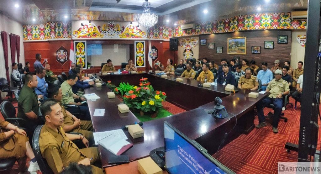 BARITO.NEWS, Murung Raya – Pemerintah Kabupaten Murung Raya menggelar rapat evaluasi terkait progres pekerjaan listrik desa (Lisdes) pada Selasa (6/8/2024) di Aula A Kantor Bupati Murung Raya. Rapat ini dipimpin oleh Staf Ahli Bidang Ekonomi, Keuangan, dan Pembangunan Kab. Mura, Reyzal Samad, didampingi Kepala Dinas Pekerjaan Umum dan Perumahan Rakyat (PUPR) Kab. Mura, Paulus Karya Manginte.