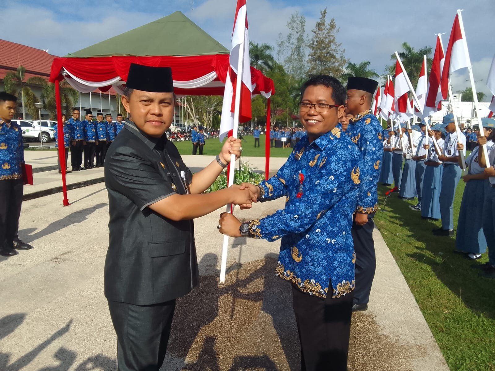 BNews. Buntok – Pemkab Barsel melaksanakan apel gabungan Aparatur Sipil Negara (ASN) Barito Selatan serta penyerahan 1.000 bendera merah putih secara simbolis dan pemeriksaan sarana prasarana kesehatan, dihalaman kantor Bupati Barsel, Senin (17/7).