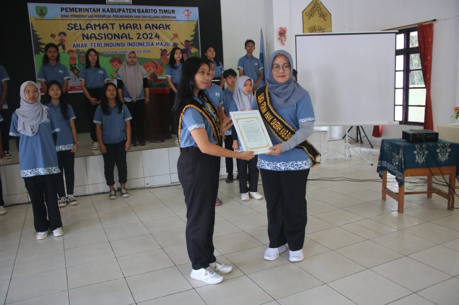 TAMIANG LAYANG – Pemerintah Kabupaten Barito Timur melalui Dinas Pemberdayaan Perempuan Perlindungan Anak Keluarga Berencana (DP3AKB) menyelenggarakan peringatan Hari Anak Nasional (HAN) ke-40 di Aula Dinas Pendidikan pada Kamis, 25 Juli 2024. Acara ini dihadiri oleh berbagai pejabat, perwakilan dinas terkait, dan pelajar dari berbagai tingkatan pendidikan.