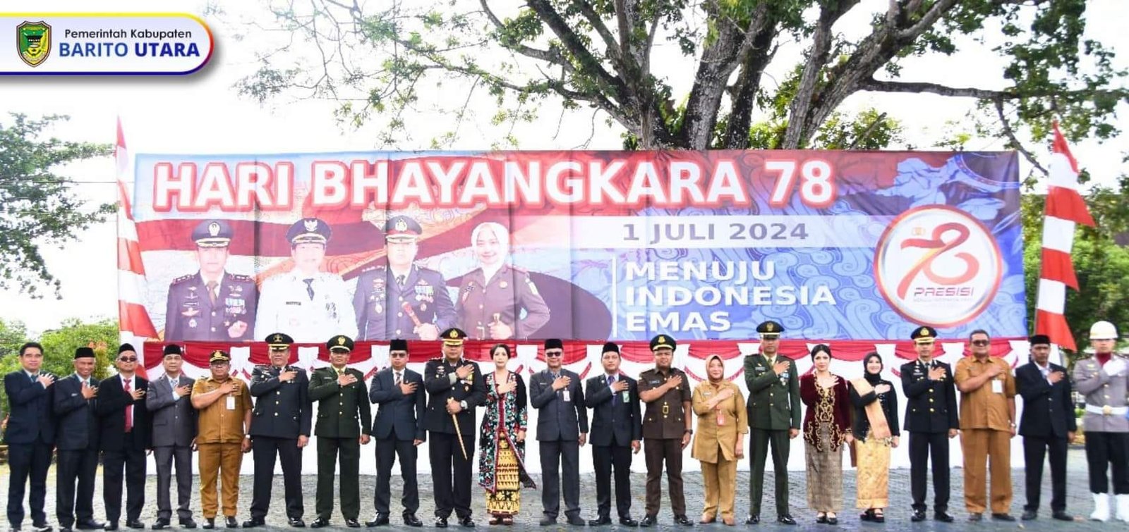 MUARA TEWEH – Pemerintah Kabupaten Barito Utara (Barut) bersama Kepolisian Resort Barito Utara menggelar upacara gabungan dalam rangka memperingati Hari Ulang Tahun (HUT) Bhayangkara ke-78. Upacara ini dilaksanakan di halaman kantor Bupati Muara Teweh pada tanggal 1 Juli 2024, dipimpin langsung oleh Kapolres Barito Utara, AKBP Gede Eka Yudharma, S.I.K, M.A.P, dan diikuti oleh pasukan dari TNI, Polri, Disdamkarmat, Pol PP, serta pelajar.