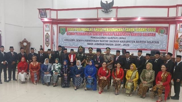 Buntok – Penjabat (Pj) Bupati Barito Selatan, H. Deddy Winarwan, menegaskan bahwa pelantikan anggota DPRD terpilih untuk periode 2024-2029 merupakan puncak dari seluruh rangkaian proses pemilihan legislatif yang telah dilaksanakan sebelumnya. Acara pelantikan ini berlangsung di ruang rapat Graha Paripurna DPRD Barito Selatan, pada Rabu (14/8/2024).