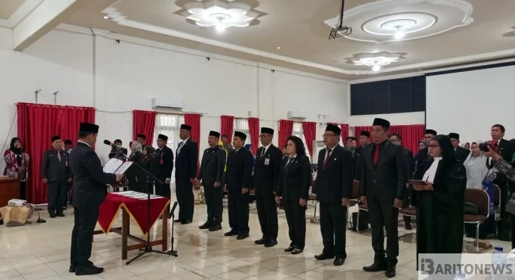 Buntok – Penjabat (Pj) Bupati Barito Selatan (Barsel), Kalimantan Tengah (Kalteng), H Deddy Winarwan, mengukuhkan sepuluh pejabat eselon II dengan nomenklatur baru di Aula Kantor Bappeda, Kamis (30/1).