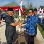 H Deddy Winarwan kepada sejumlah wartawan mengatakan, pagi ini dilaksanakan apel gabungan, penyerahan 1.000 bendera merah putih secara simbolis, yang dilanjukan dengan pengecekan sarana prasarana kesehatan.
