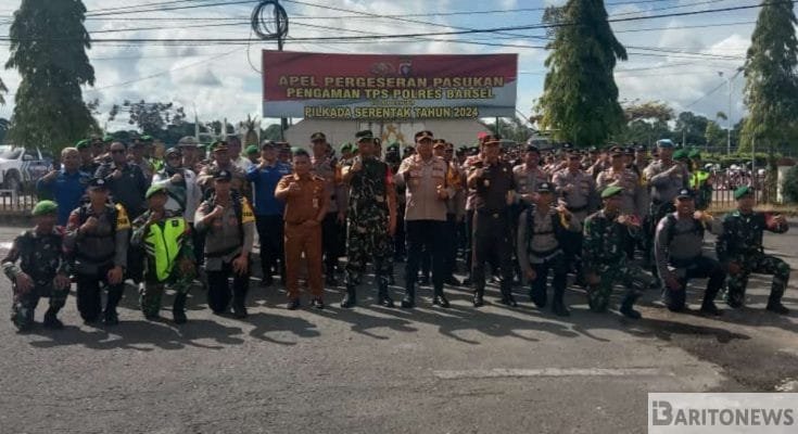 Buntok – Polres Barito Selatan (Barsel) melaksanakan apel pergeseran pasukan (Serpas), dalam rangka persiapan pengamanan Pemilihan Kepala Daerah (Pilkada) 2024, Yang berlangsung di halaman Mako Satsamapta Polres Barsel, pada Senin (25/11).