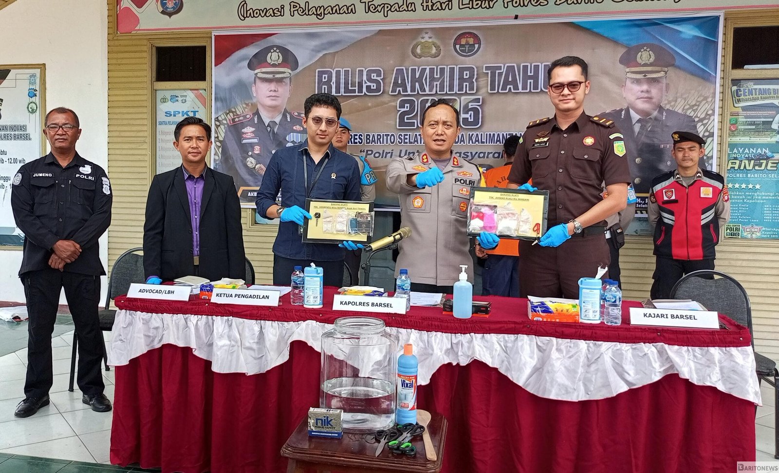 “Selama bulan November 2025, Polres Barito Selatan berhasil mengungkap dua kasus tindak pidana narkotika dengan dua orang tersangka dan barang bukti sabu dengan total berat puluhan gram,” ujar AKBP Jecson.