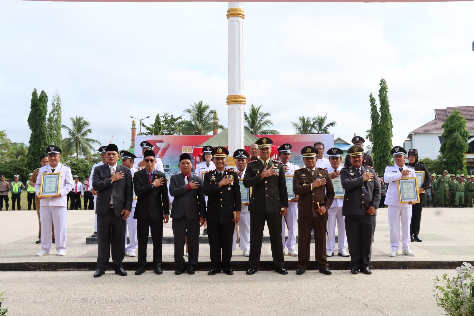BNews, BUNTOK – Polres Barsel menggelar upacara HUT Polri ke 77 di halaman Kantor Bupati Barsel, Sabtu (1/7). Bertindak sebagai inspektur upacara Kapolres Barsel AKBP Yusfandi Usman SIK, MIK. Turut hadir Pj Bupati Barsel H Dedi Winawan yang diwakili oleh Asisten III Setda Barsel Mirwansyah, Forum Koardinasi Pimpinan Daerah, pejabat utama Polres Barsel, serta undangan lainnya.
