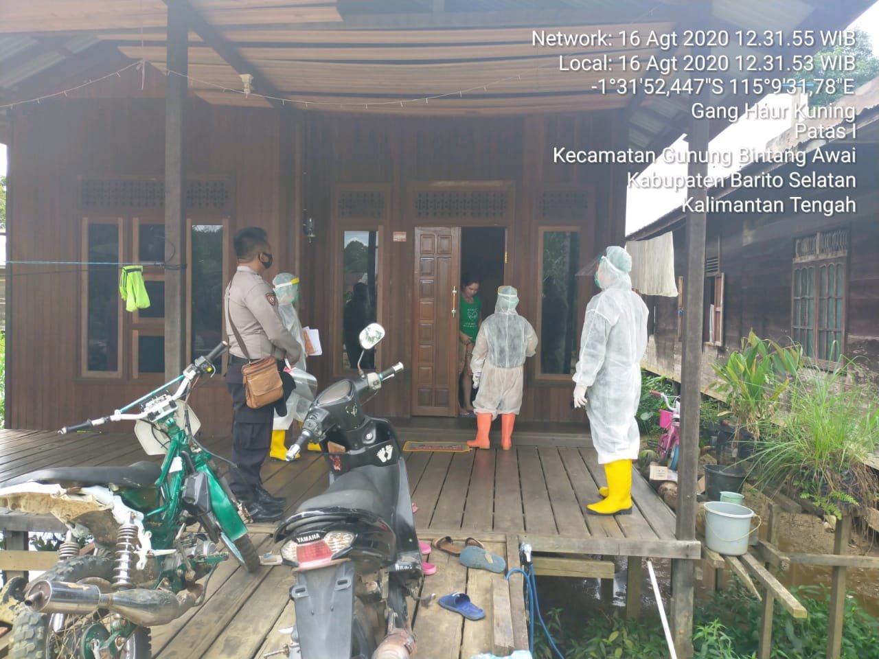 Baritonews, BUNTOK – Dalam rangka untuk memberikan rasa aman, personel Polsek Gunung Bintang Awai Polres Barsel melaksanakan pengawalan kepada petugas Puskesmas Desa Patas yang melaksanakan Tracking Contact (Rekam Kontak) pasien Covid-19, Minggu (16/8).