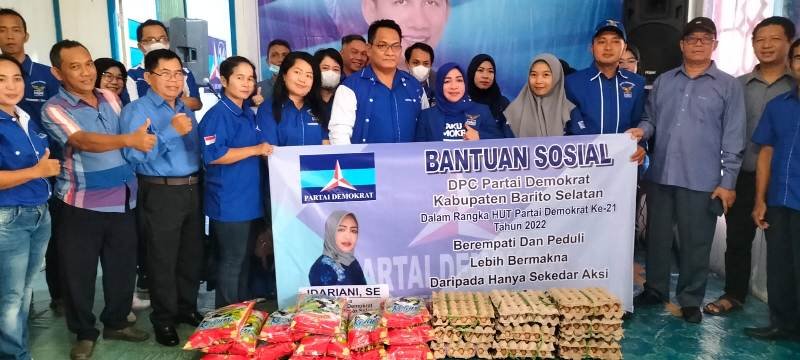 BNews, Buntok – Dalam rangka untuk memeriahkan hari ulang tahun (Hut) ke-21 partai Demokrat, yang jatuh pada tanggal 9 September 2022, DPC Partai Demokrat Barsel berbagi sembako dan melaksanakan berbagai lomba.