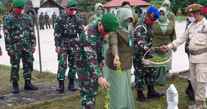 Baritonews, BUNTOK – Dalam rangka memeriahkan dan memperingati hari ulang tahun (Hut) ke-62 Kodam XII Tanjung Pura tahun 2020 ini, maka jajaran Kodim 1012 Buntok beserta ibu-ibu Persit menggelar ziarah ke makam pahlawan yang berada di Jalan Seekarno Hatta Desa Sababillah Buntok, Kamis (16/7).