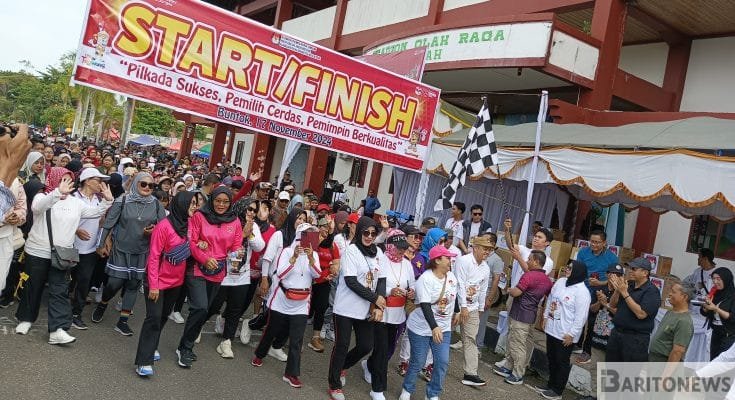 Buntok – Ribuan warga meramaikan kegiatan jalan sehat yang digelar Komisi Pemilihan Umum (KPU) Barito Selatan (Barsel) berlangsung di depan Stadion Batuah, Buntok, pada Minggu (17/11).