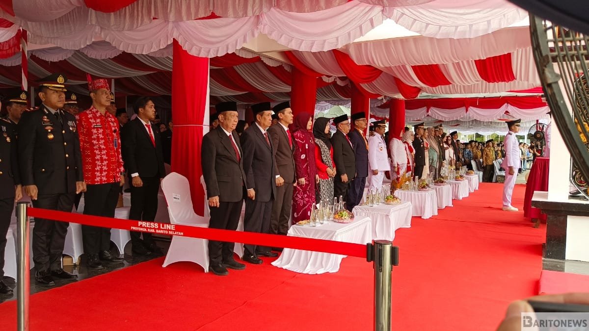 Upacara peringatan HUT ke-80 Proklamasi Kemerdekaan Republik Indonesia itu juga dihadiri Bupati Barsel, Eddy Raya Samsuri, Wabup, Khristianto Yudha, Ketua DPRD, Farid Yusran, mantan Bupati, Ir H Baharuddin H Lisa, mantan Wabup, Satya Titiek Atyani Djoedir, unsur Forkopimda, kepala OPD lingkup Pemkab Barsel, dan undangan lainnya. (am)