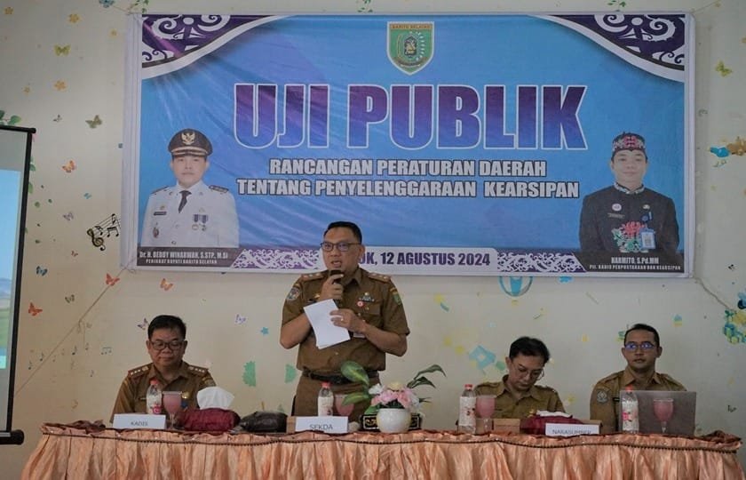 Buntok – Pemerintah Kabupaten Barito Selatan menggelar uji publik untuk Rancangan Peraturan Daerah (Raperda) tentang penyelenggaraan kearsipan. Acara ini dihadiri oleh Sekretaris Daerah Edy Purwanto mewakili Penjabat (Pj) Bupati Barito Selatan, H. Deddy Winarwan, dan diselenggarakan oleh Dinas Perpustakaan dan Kearsipan Kabupaten Barito Selatan, 12 Agustus 2024.