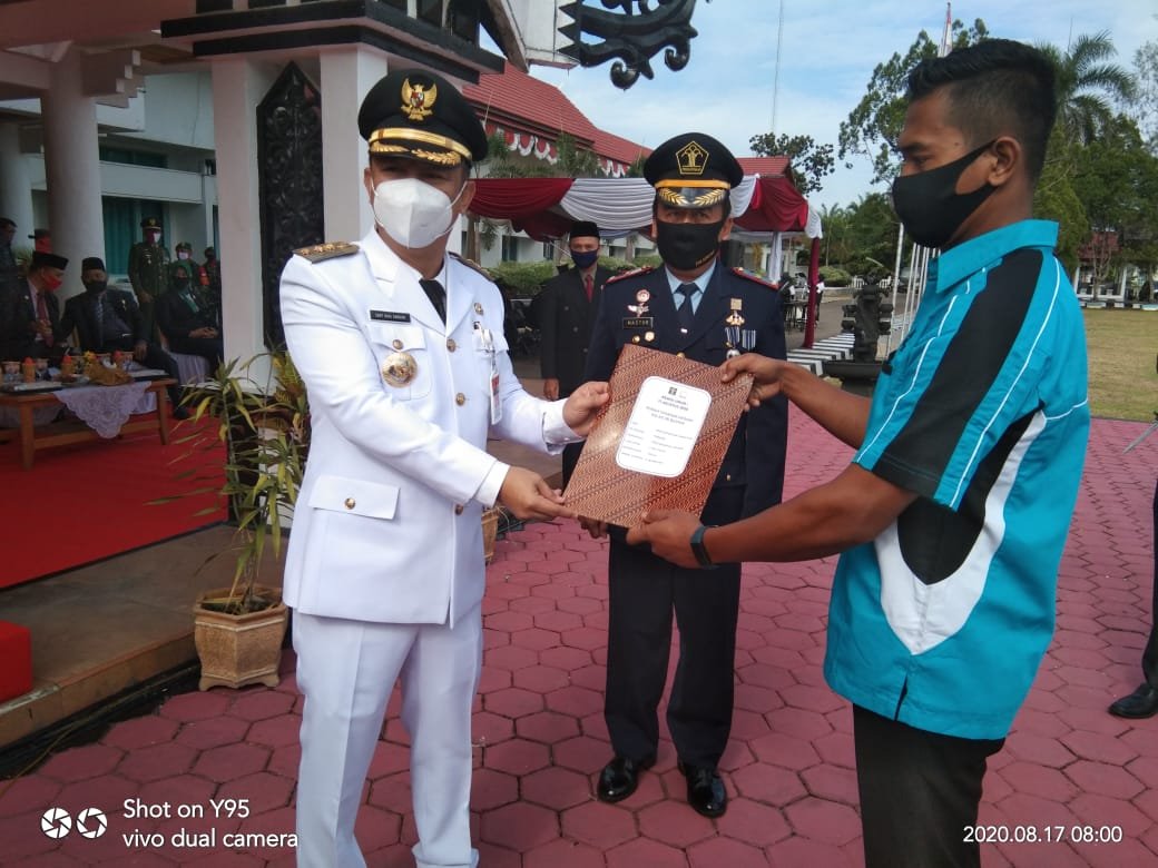 Baritonews, BUNTOK – Upacara bendera dalam rangka untuk memperingati detik-detik proklamasi atau peringatan hari ulang tahun (Hut) Ke-75 Republik Indonesia tahun 2020 yang dilaksanakan di halaman kantor Bupati Barsel, Senin (17/8) berjalan dengan sederhana, namun tetap hikmah.