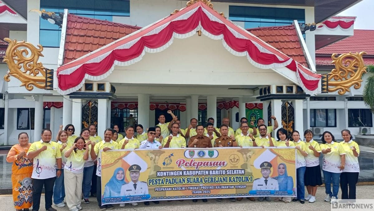 BUNTOK (BNews) – Wakil Bupati Barito Selatan (Barsel), Khristianto Yudha, secara resmi melepas kontingen Pesta Paduan Suara Gerejani (Pesparani) Katolik Kabupaten Barsel yang akan berlaga pada ajang Pesparani Katolik Tingkat Provinsi Kalimantan Tengah (Kalteng) 2025 di Palangka Raya. Pelepasan dilaksanakan di halaman Kantor Bupati, Selasa (18/11).